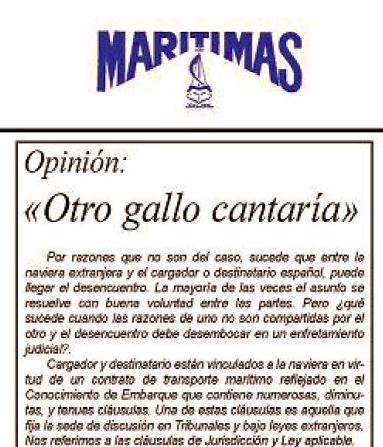 En la edición del 30 de abril de 2015 del Diario Marítimas el Club del Transitario Marítimo ha publicado un artículo de opinión titulado «Otro gallo cantaría».