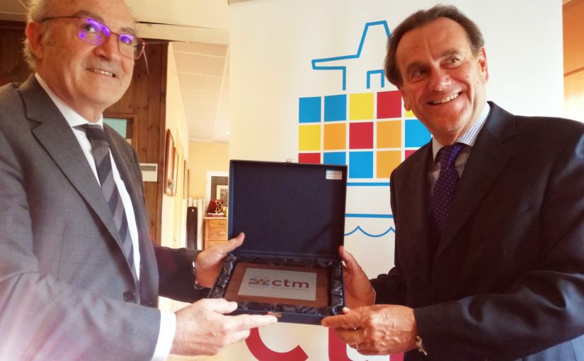 El pasado jueves 3 de mayo, en la tradicional reunión mensual de socios del CLUB DEL TRANSITARIO MARITIMO de Barcelona (CTM), participó como invitado de honor Sixte Cambra, Presidente del Port de Barcelona, que acudió acompañado de Núria Burguera, Directora de Relaciones Institucionales y Comunicación del Port de Barcelona.
